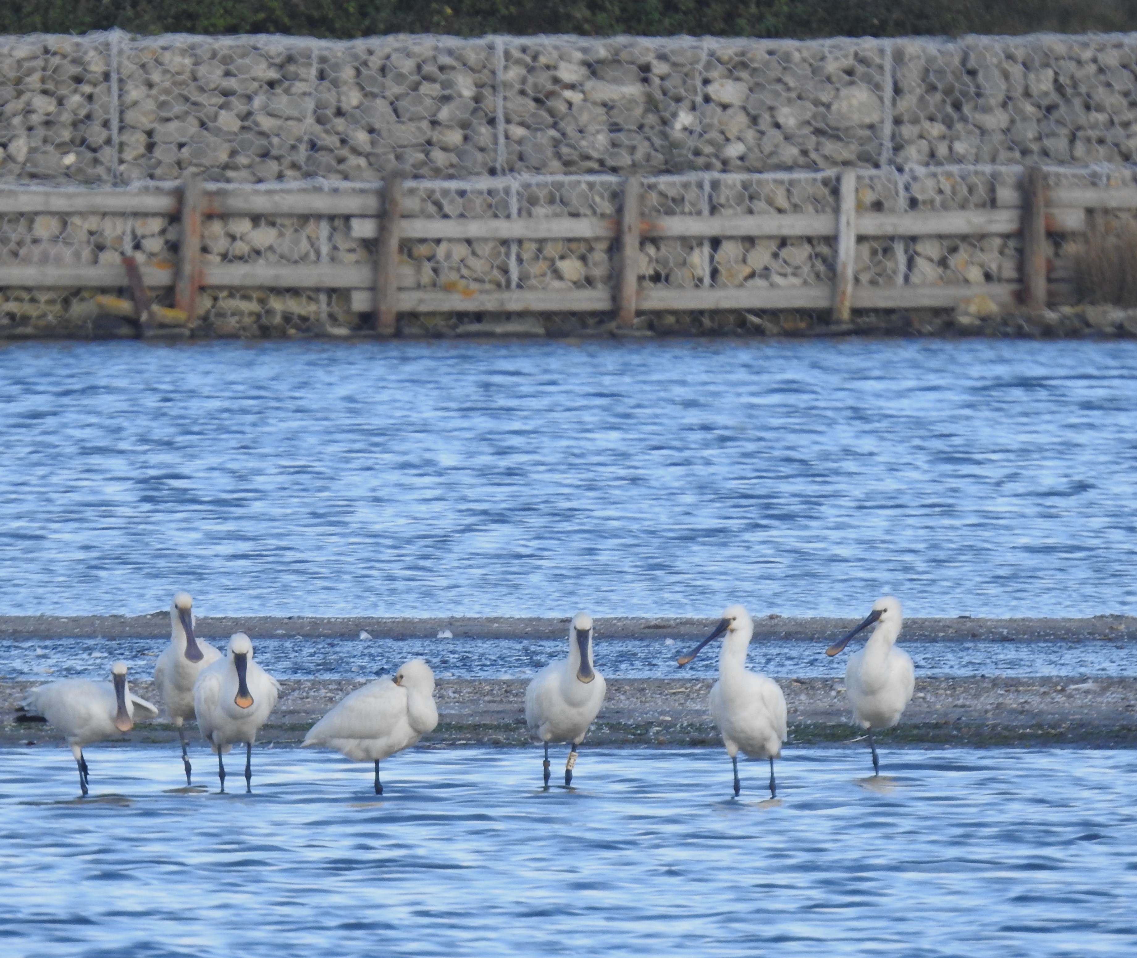 A large group of Avocets were gathered together in a long line on the other side of the lagoon